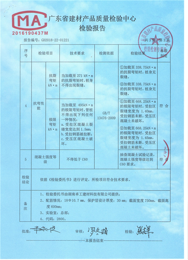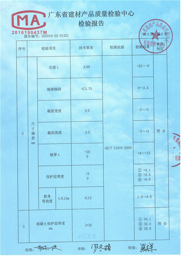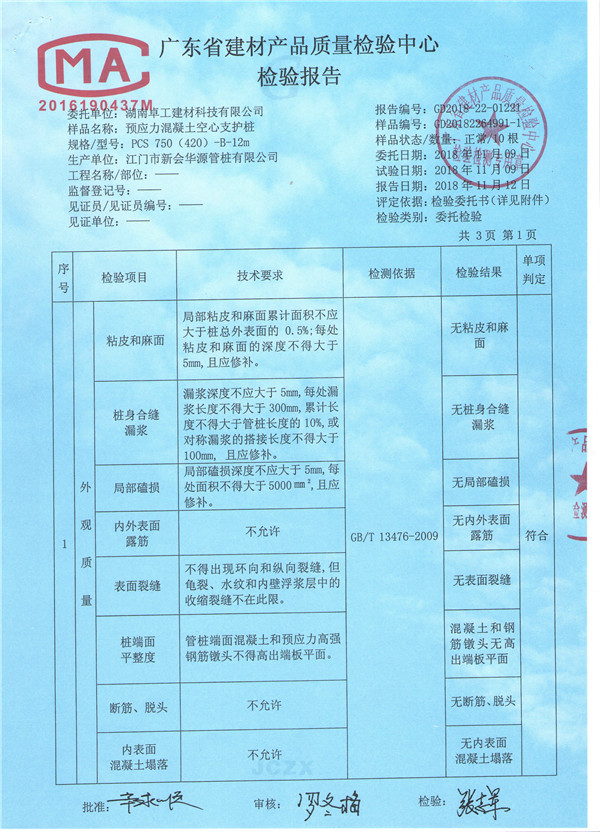 PCS預應力空心支護樁 產品檢測包括:產品外觀質量檢測、產品尺寸允許偏差檢測、抗裂性能檢測、抗彎性能檢則、抗剪承載力檢測等 。
